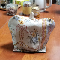 紅茶がさめないようにティーポットにかぶせるティーコゼ。何度も洗濯したので、だいぶ色褪せてきました。