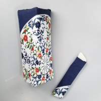 日差しの強い真夏の昼間、日傘とサングラスは必携。メガネの上からかけられるサングラスは便利ですが、大き過ぎて手持ちのメガネケースには入りません。ボール紙で三角柱の形の容器を作りました。ちょうど不要のランチョンマットがあったのでそれを表側に、また、メガネが傷つかないように使い古しの鍋つかみの内側についていたキルティング生地を内側に貼り付けました。